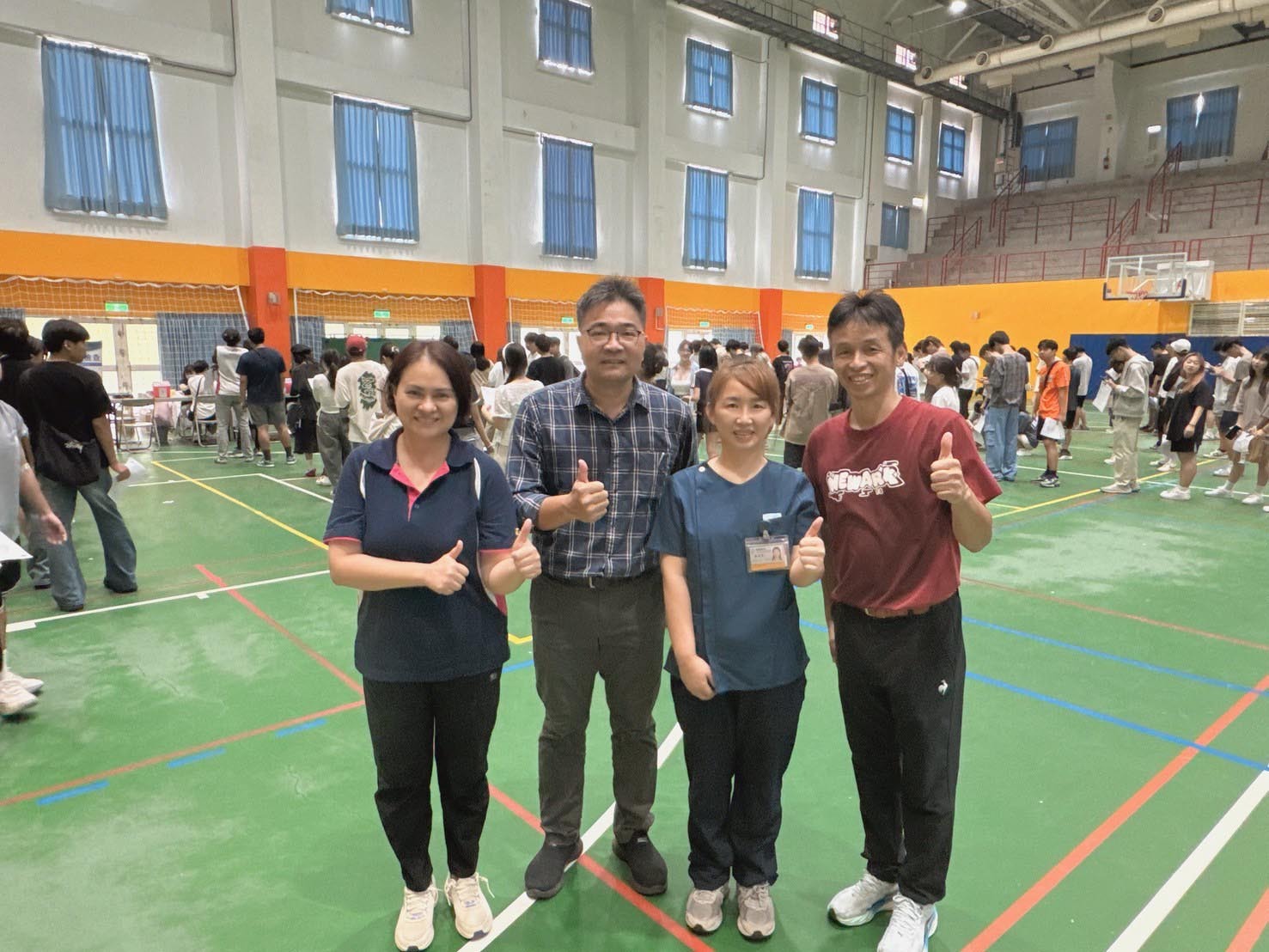 東華大學學務長林俊瑩到場巡視並與新生互動,強調新生健檢是開學後的重要任務之一,衛生保健組事前周延規劃、跨單位合作,讓活動順利完成。第二場健檢日,衛生保健組黎士鳴組長亦親赴現場,感謝醫護與工作同仁的專業投入,讓新生與家長更安心。
