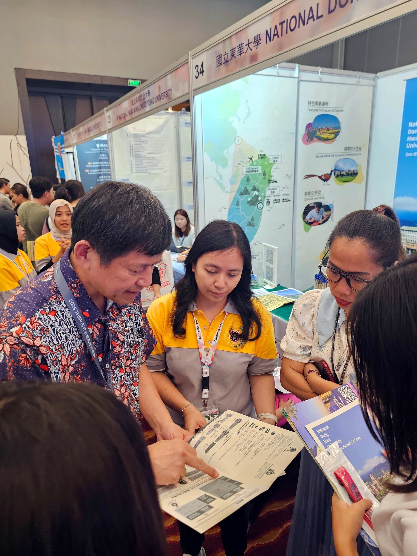 此次展會也吸引許多東華大學印尼校友前來展位與師長敘舊。他們不僅跟學生們分享在東華的學習與生活經驗,更肯定母校為印尼學生打造的優質教育環境。許多印尼校友投身當地學術與產業界,持續發揮專業所長並熱心推廣母校,也成為東華大學與印尼間的重要橋梁。