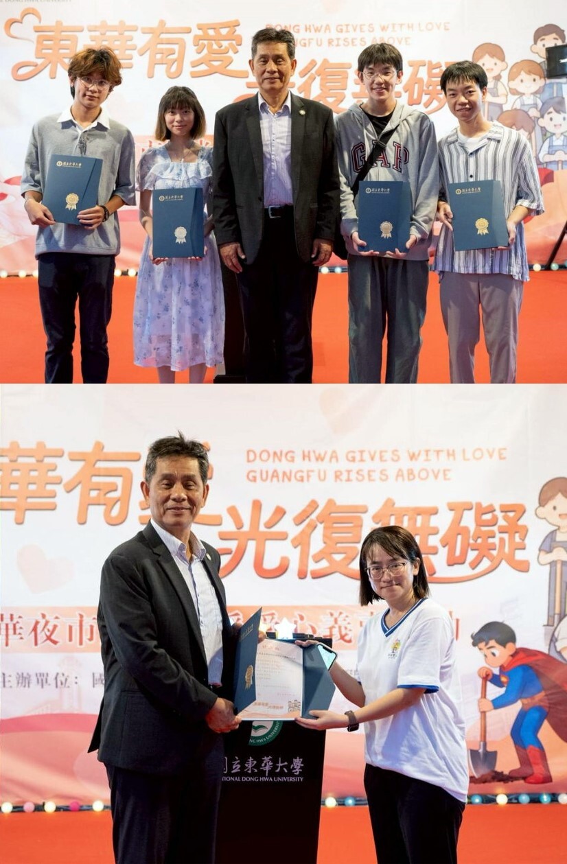 國立東華大學10月14日晚間結合「東華夜市」舉辦「星光送暖愛心義賣」,募得新臺幣13萬7千元,全數捐贈至「財團法人賑災基金會0923花蓮馬太鞍溪堰塞湖災害專案」,攜手全校師生、校友、攤商為光復復原盡一份心力。