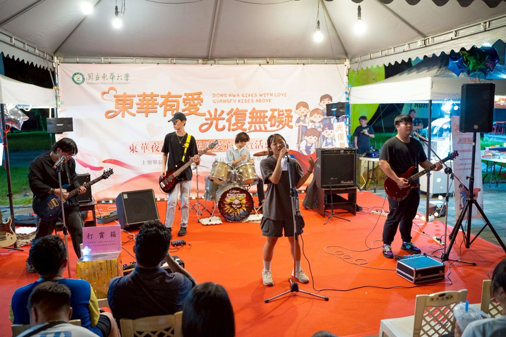 本次義賣熱烈遠超預期,除東華夜市數十家攤商慷慨捐出部分所得,校內外師生與校友也自發成立「文創手作區」、「愛心商品區」、「以歌送愛」,以及「社團送暖」等超過四十個愛心攤位。參與義賣的攤商與師生團隊熱情投入,校內包含東華附設幼兒園、校友總會楊政道會長、校友楊長杰博士、藝術設計系曾靖喩同學、東華夜市學生團隊、國際學生團隊,以及熱舞社、吉他社、口琴社、打擊樂社、熱音社等社團,以創意與行動為活動注入溫度,攤商們更主動響應捐出部分營收,齊心為光復鄉親盡一份心力。