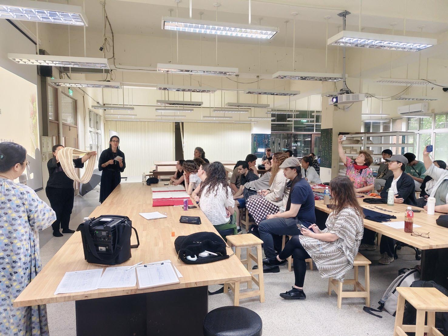 10月28日(星期二)上午,澳洲QUT學生與本校學生一同參與謝宗翰老師開設的「原住民族樂舞概論」課程,進一步瞭解臺灣原住民族樂舞的歷史淵源與文化意涵。下午則參加由樂藝學程與原資中心共同主辦的「臺灣原住民藝術vs.南島語族當代藝術-尤瑪.達陸老師講座」,特別邀請文化部文化資產局國寶級傳統工藝保存人—尤瑪.達陸老師主講。尤瑪老師以泰雅族織布工藝為例,分享其傳承經驗與如何結合當代藝術展現族群文化故事。本校楊同學分享「看見尤瑪老師與本校學生在分享織布過程跟自身的經驗與心得分享的時候,認為他們每個人都很厲害」,澳洲QUT學生也回饋表示「認識到了政府決策對臺灣原住民藝術的影響。」