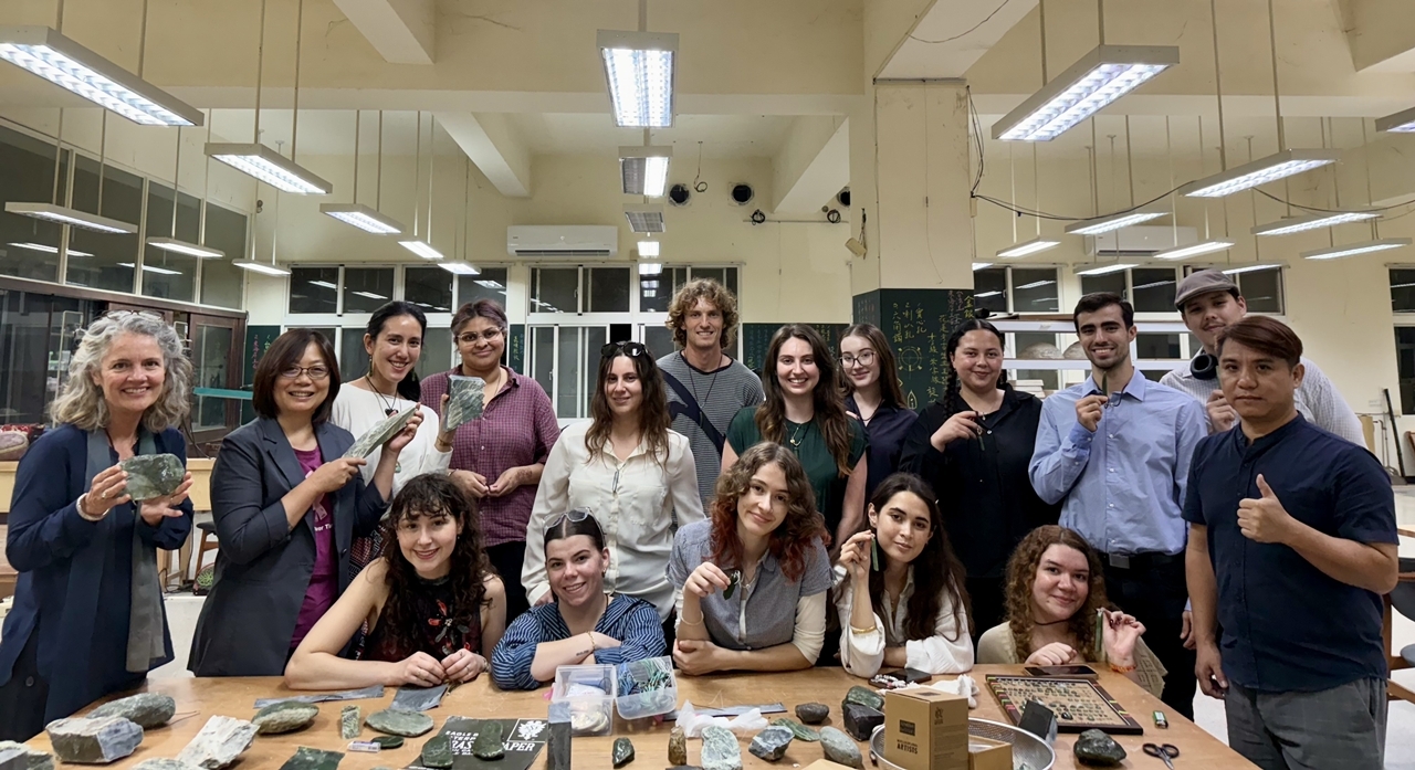 活動首日,澳洲QUT學生在語言中心華語課程後,首先前往原住民族學院,與本校學生一同參與王昱心教授開設的「南島文化與藝術」課程。課程以南島語族與太平洋文化與藝術作為基礎,從傳統藝術與當代創作中,觀察與分析各族群文化與藝術展現的異同與脈絡,進而比較與臺灣原住民族族群美感與藝術現況。課程開始前,昆士蘭科技大學創意產業學生先向東華師生介紹自己的藝術創作歷程及作品,本校學生亦熱情分享回饋。當日課程教授南島文化與藝術概論工藝篇,由樂藝學程王昱心教授與林盛火老師帶領本校學生與澳洲學生親身體驗磨玉工藝,認識臺灣玉的加工技術。學員表示能藉由臺灣玉的加工製作,認識史前人如何在沒有現在器具下以傳統製作方式將臺灣玉加工成飾品與其背後的美感,收穫良多!