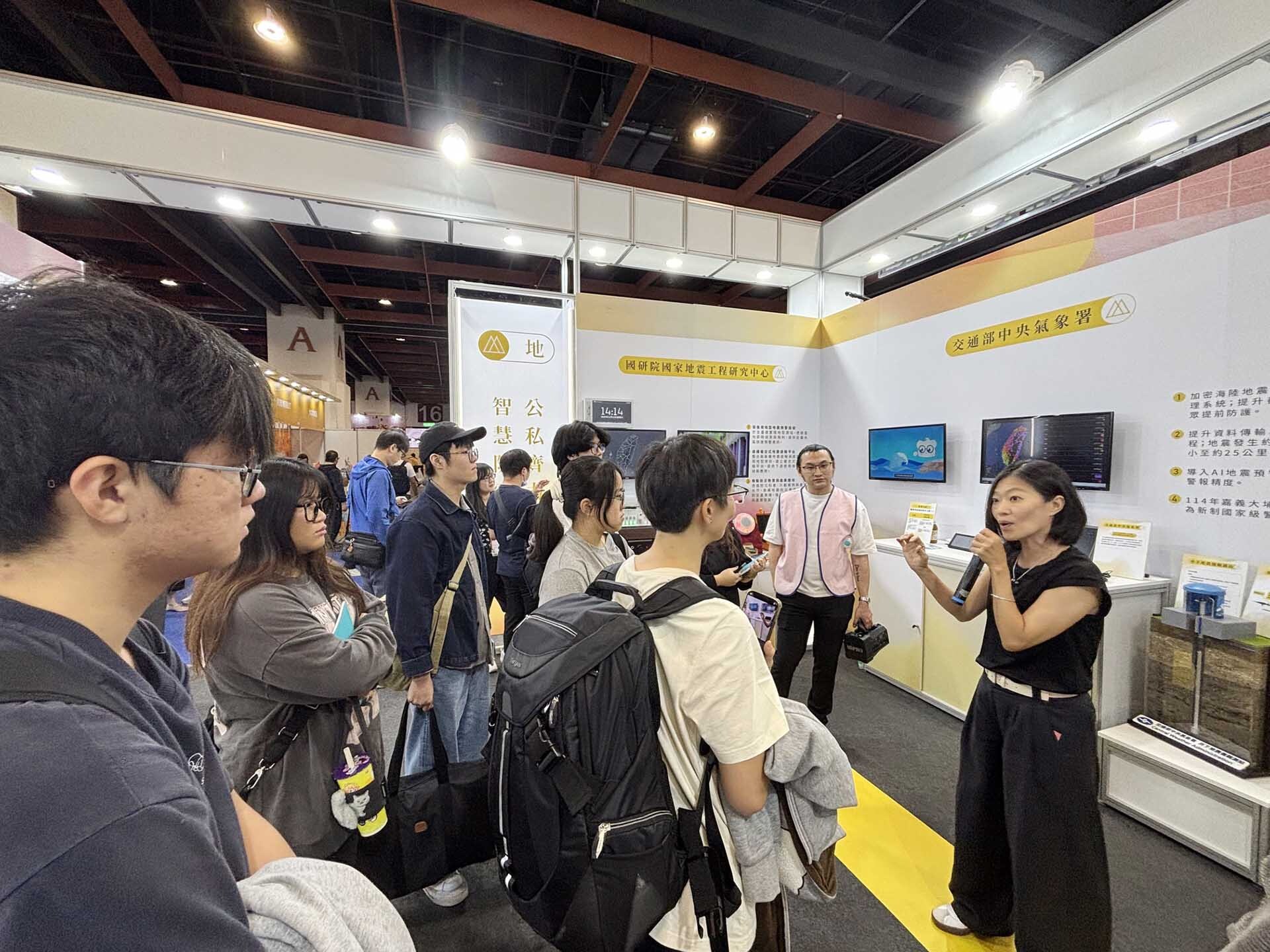 午後,學生走入科技趨勢前線,前往臺北世貿參與「台灣資訊月X臺灣教育科技展」,今年以「看見AI進行式」為主題,展現AI科技在職場、教學及生活上的學習與應用,本活動特別安排團體雙語導覽,深入瞭解國家科技政策、AI技術如何應用於地震預警、公共安全、智慧生活及智慧教育等領域。透過導覽,學生瞭解到臺北市將於11月底主辦「2025亞洲技能競賽」(WorldSkills Asia Taipei)。這是臺灣睽違30年再次取得國際技能競賽主辦權的喜訊,也進一步讓學生認識臺灣會展產業的發展潛力與多元可能性。觀展時學生能在實際提問與展示體驗中,練習科技相關英語表達,同時瞭解AI如何改變教育模式與提升學習品質,使語言能力與科技素養得以同步發展。