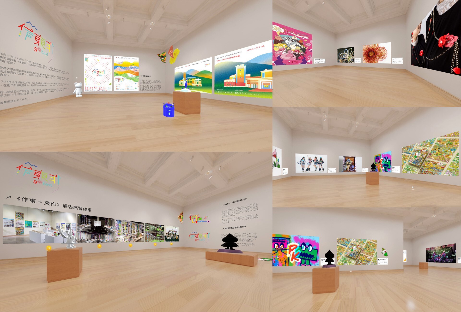115級畢業製作團隊更首次與L'AiR產學合作,搭建《作東◎東作》線上展間,重新思考「作品如何被看見」。不受空間與牆面限制,線上展得以延伸概念,構築更立體的視覺語境-視角、光線、距離與動線,都能在虛擬場域中被重新安排,帶來截然不同的觀展體驗。透過虛實並行的展覽形式突破展場邊界,讓作品被更多人以多重方式接觸與理解。