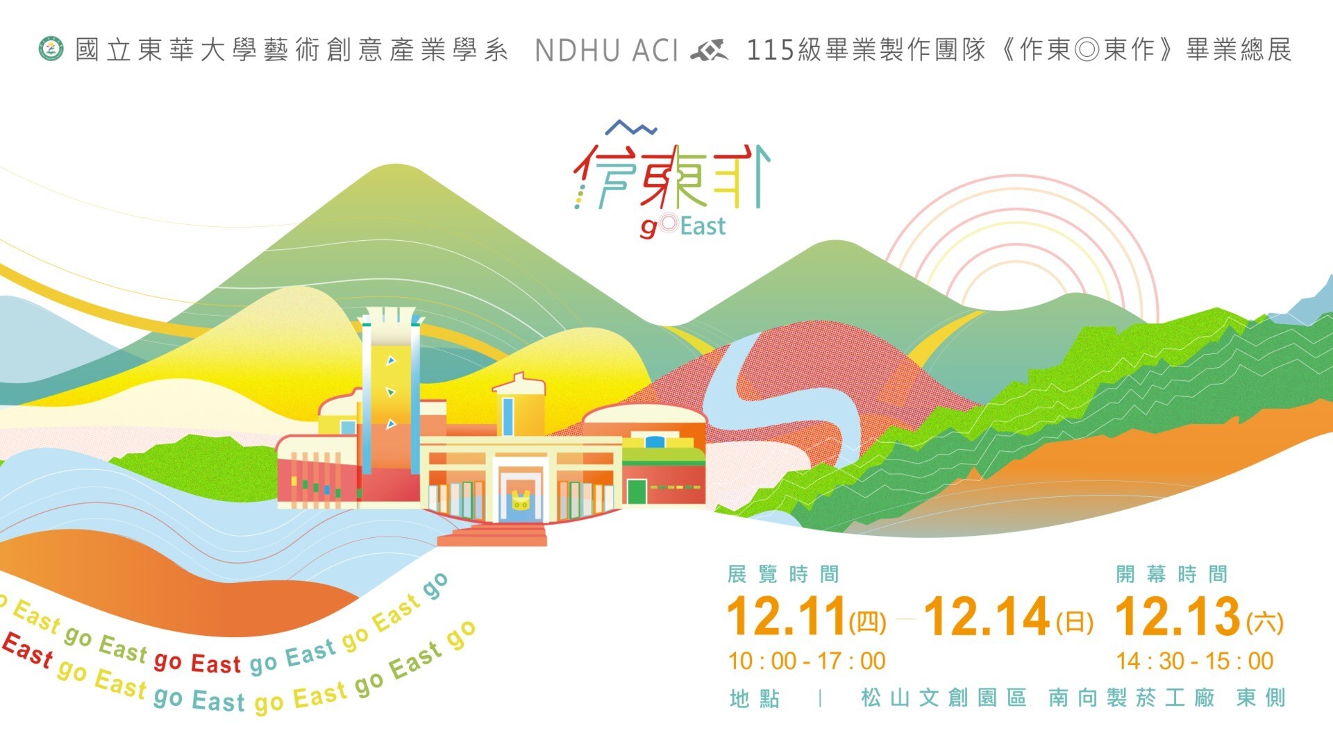 在跨越校園、走向大眾的此刻,《作東◎東作》不僅是一次展覽,更是一場從東部出發、向世界發聲的創作邀請。誠摯邀請您前往松菸,共同見證115級畢業生的創作能量與藝術實踐。
