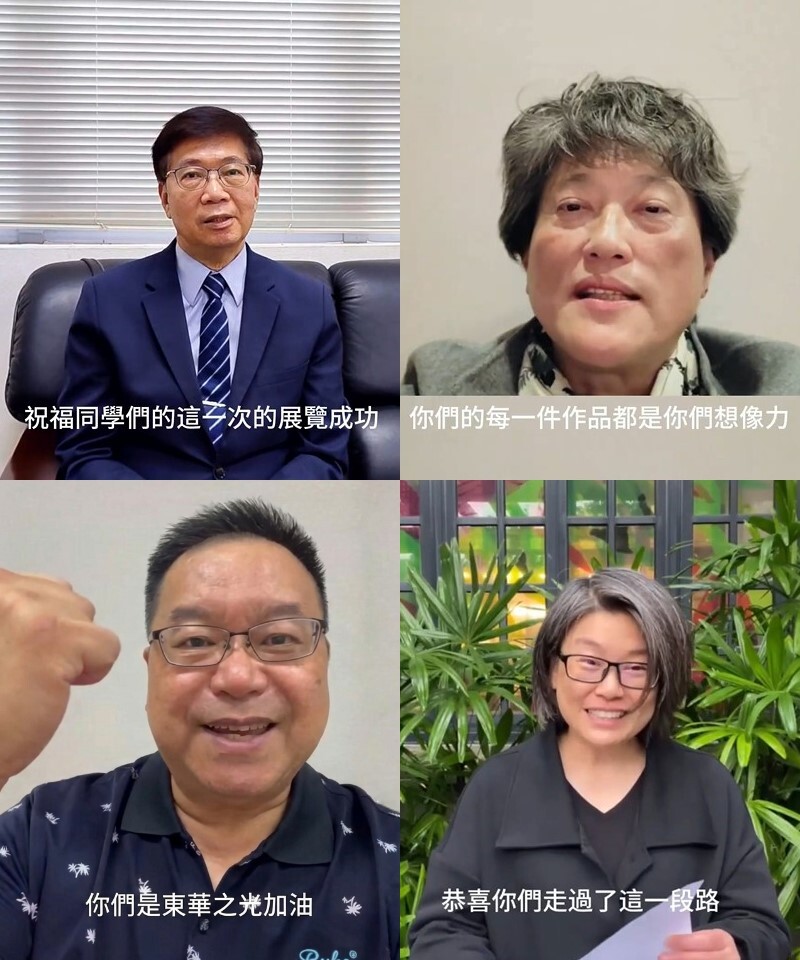 藝術學院廖慶華院長讚譽同學們為「東華之光」,並表示在兩位指導老師帶領下,同學們展現出敬業且認真的態度,令他深受感動,也對同學的未來充滿信心。他衷心祝福展覽成功,期待同學們在未來持續發光發熱。