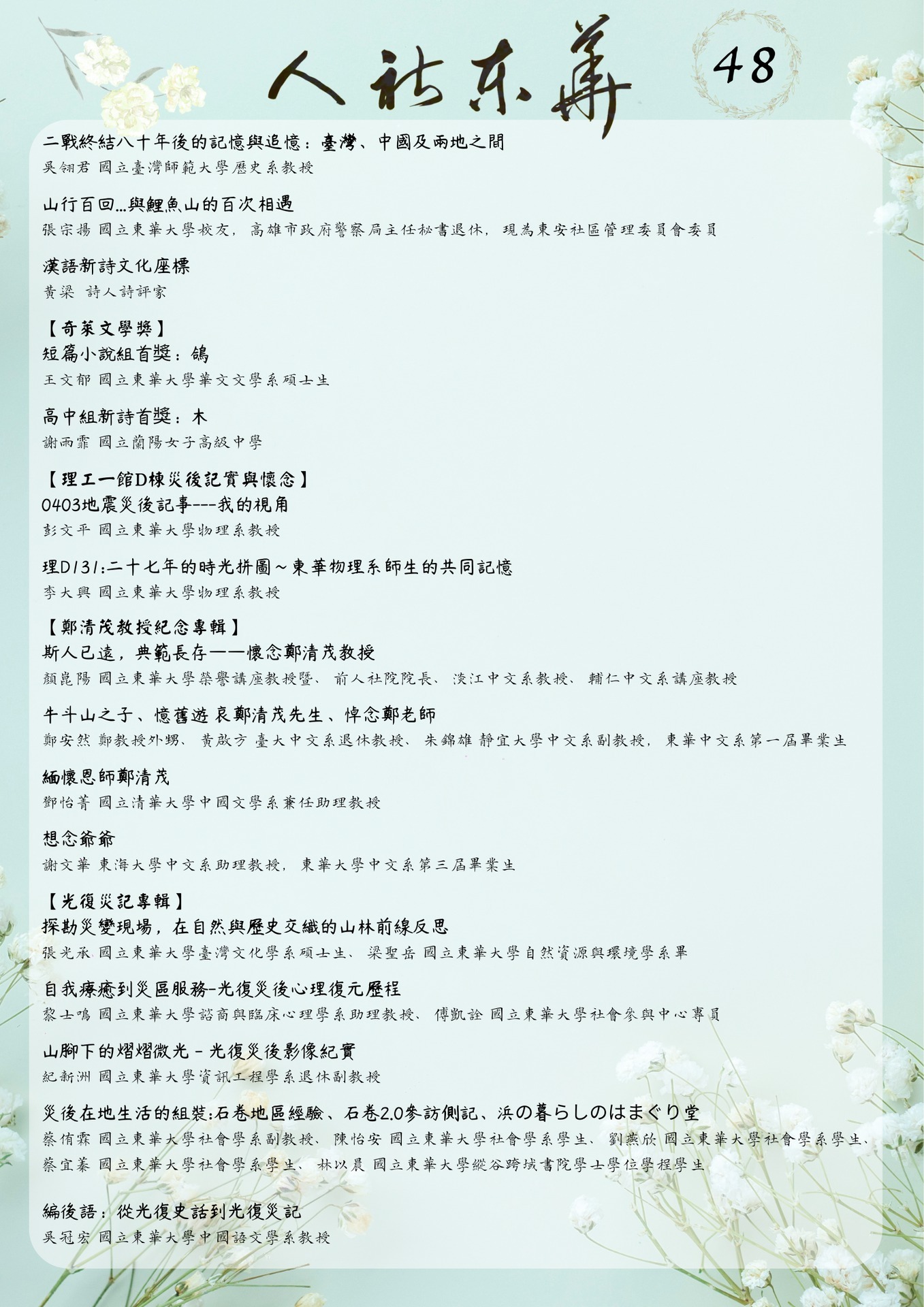 《人社東華》〈➜電子季刊冬季號48期〉發刊了!