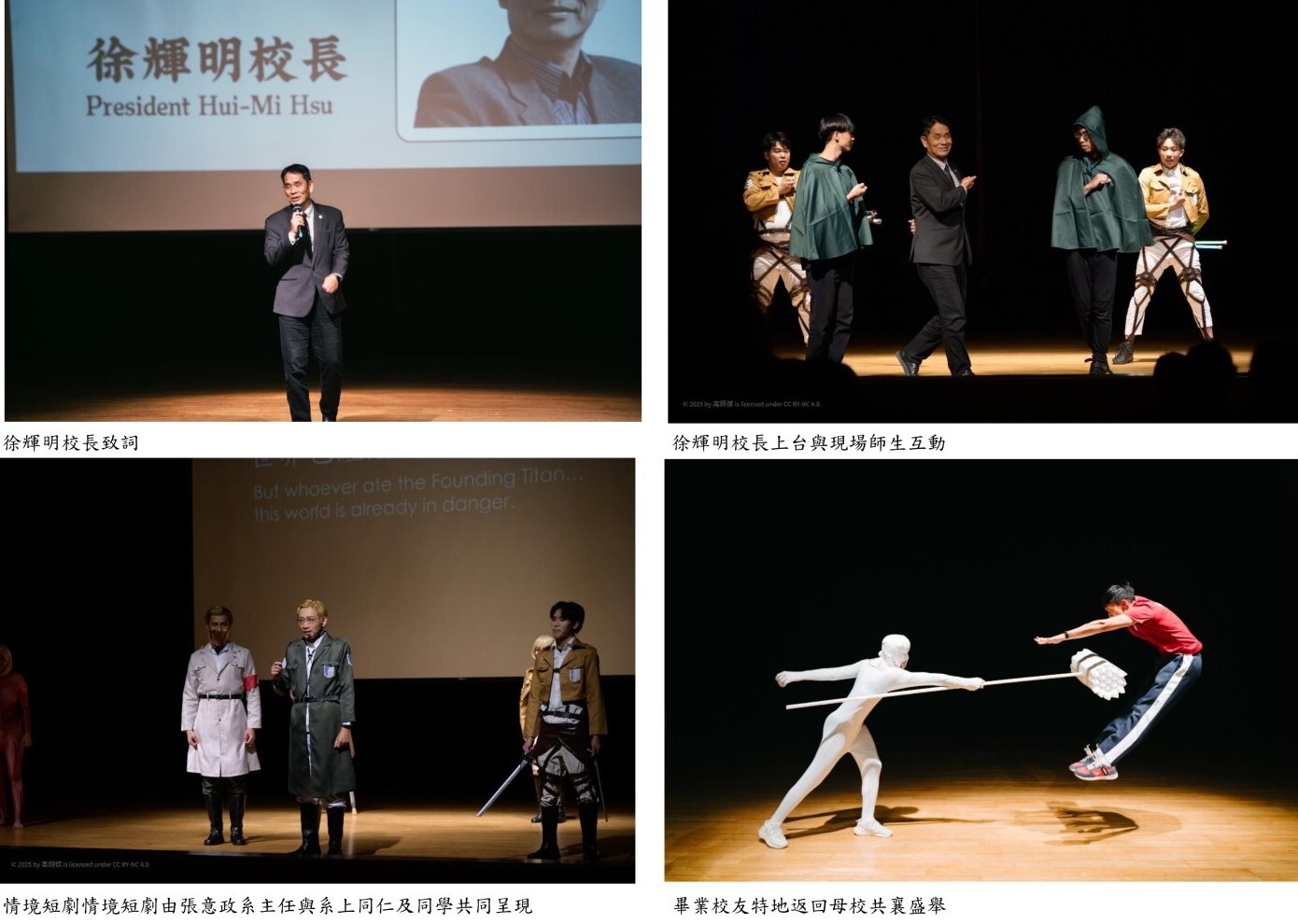 活動現場,不少學生開心地以《進擊的巨人》角色進行Cosplay,展現對主題的高度投入與創意;透過多元文化表演與創意成果呈現,也促進本地與國際學生交流,使學習成果發表不僅止於展示,更成為學生主動參與、共同建構的學習經驗,營造開放、多元且具凝聚力的系所氛圍。