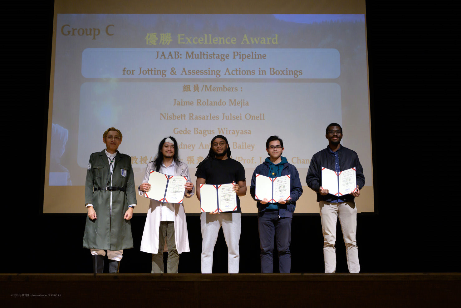 Alex Carlos Ack:Scene to Sound: Converting a Film into an Audiobook with the Use of Artificial Intelligence(指導教授:方文杰) Gede Bagus Wirayasa:JAAB: Multi-Stage Pipeline for Jotting and Assessing Actions in Boxing(指導教授:張意政) 唐于田:可解釋人工智慧中的 MoE 網絡專家選擇(指導教授:顏士淨) 廖虹宜:居家復健智能評估系統(指導教授:張意政) 房曉聰:StyleVision: AI-Integrated Wardrobe Stylist(指導教授:張道顧) 柳人禎:EmoScale: Waveform-Based Emotional Speech Synthesis(指導教授:方文杰) 王博裕:GenAI 生成文件(指導教授:簡暐哲) 莊奕賢:DeflareCam(指導教授:張道顧) 鄭宇翔:對抗樣本技術應用於社交媒體影像隱私保護(指導教授:簡暐哲)
