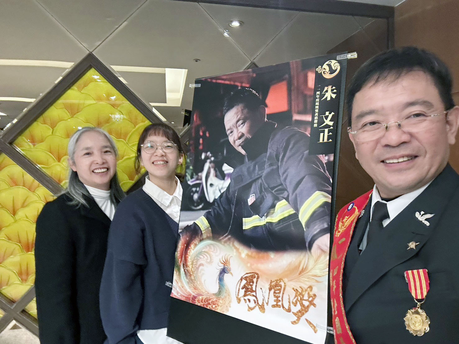 在學術領域與推廣教育方面,朱文正老師擁有管理學博士學位,在大學任教已屆30年,身為東華大學洄瀾學院體育中心副主任,他積極發揮體育專長,在校內開設許多推廣教育課程,並辦理潛水、水上救生、攀岩、獨木舟、立槳(SUP),以及急流救生等多項專業證照講習活動,將防災教育紮根於校園,為社會培育無數救難專才。這份熱情亦源於家族傳承,其父朱富雄曾任宜蘭縣義消副總隊長,而朱老師與內人張淑慧及一對子女朱怡亭、朱翊齊,全家人皆為認證的水域防災志工,每當災害發生時,全家人齊心協力投入救災的身影,正是韌性臺灣的最佳縮影。東華大學體育中心表示,朱文正老師榮獲鳳凰獎是實至名歸,他以學術專業結合救災實務,不僅展現東華大學服務社會的精神,更為全臺義消楷模樹立卓越標竿。