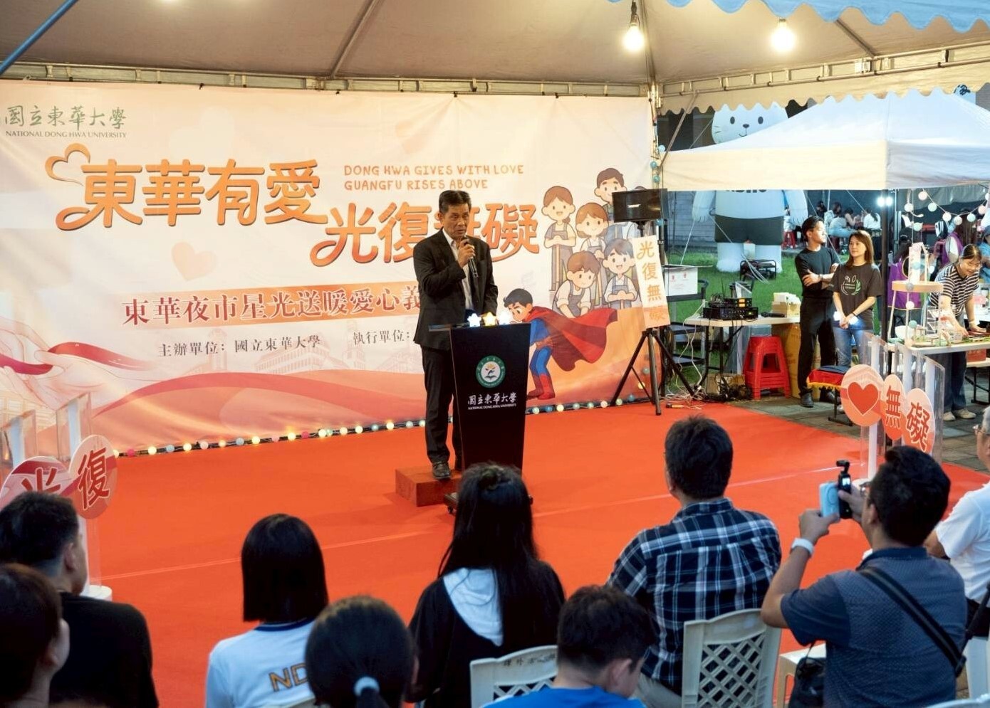 去年光復水災救災期間,東華大學主管率隊組成200人「光復鄉洪災志工團」、與夜市攤商共同響應「東華夜市愛心義賣」活動、校內發動的「一日所得自由捐」活動,以及結合企業資源發起光復幼兒園「大手牽小手」關懷行動。此外更有數千人次師生自主前往災區協助,即便在無額外交通補助的情況下,校園內仍激發出強大的公益共識,這種「不計酬勞、只論付出」的熱血精神,至今仍是學校最動人的風景,師生在泥濘中實踐最珍貴的教育價值。