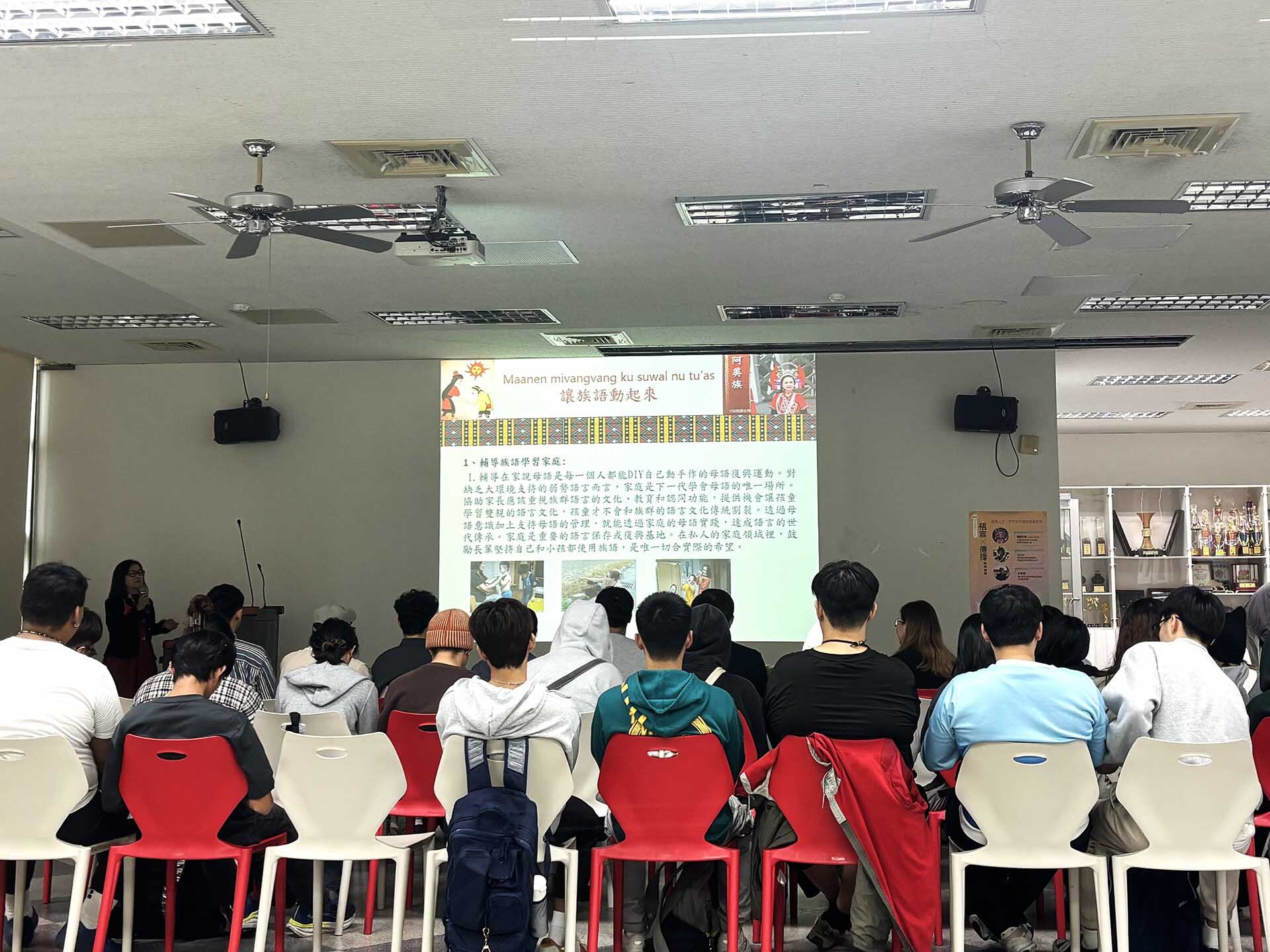 在語言復振的現場,語言推廣人員不僅是語言教學者,更是文化的實踐者、故事的轉譯者與社群的組織者。本次論壇以「語推人生」為主軸,邀請語推人員分享其投入語言推廣體系的歷程,以及在學校與部落社區推動族語時所面臨的挑戰與創意作法。透過第一線的經驗敘事,學生得以理解語言推廣工作的實際面貌,也看見語推人員如何在制度、社群與文化之間調整策略,使族語能持續在不同生活場域中被使用與傳承。