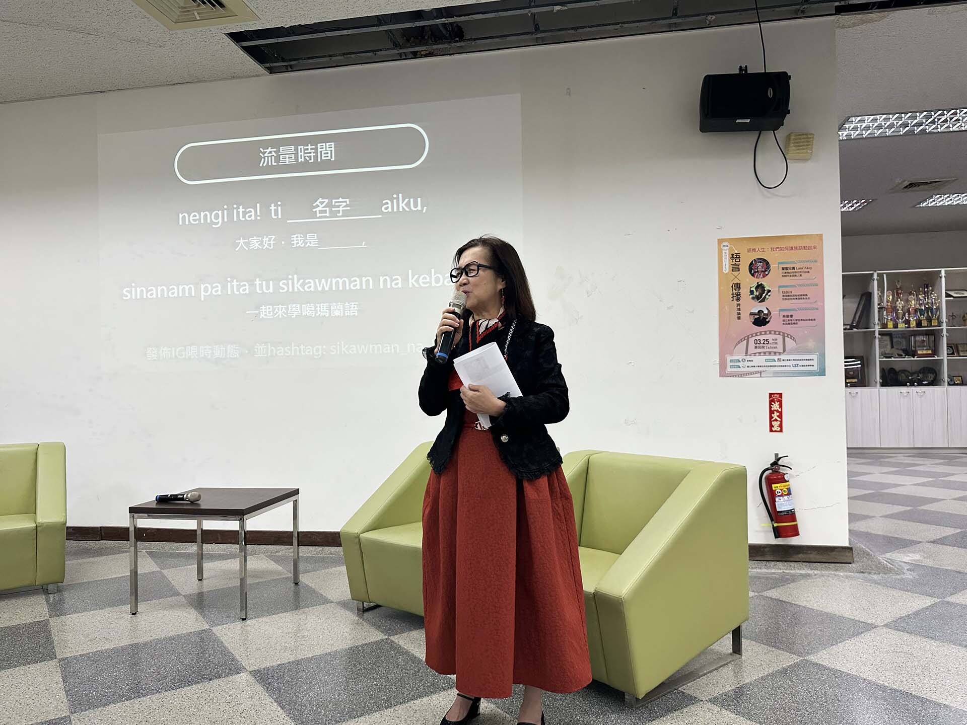 語傳系系主任李佩容教授表示,希望透過職涯導向的跨域論壇,引導學生探索語言與傳播結合的多元可能。她指出「語言推廣」不僅是制度內的一項職務,更是一種以語言參與社會、連結文化與社群的實踐方式。當語言推廣與內容創作、媒體實務及社群經營相結合時,族語便能在日常生活中展現新的活力,也為語言復振開啟新的契機。