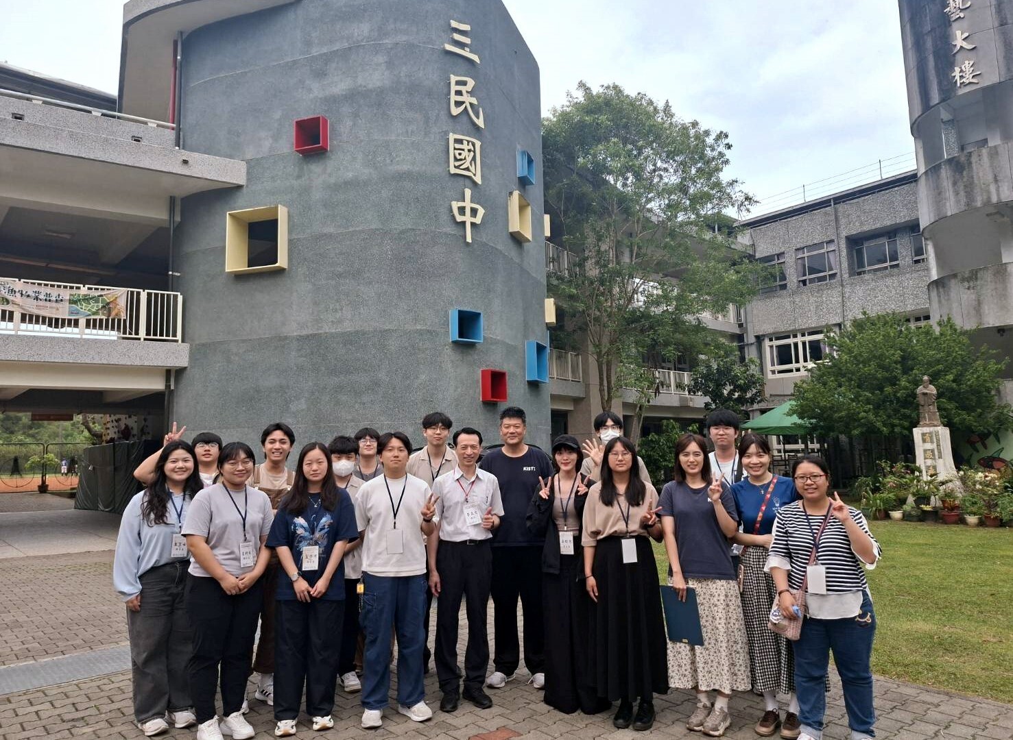 接下來參訪中小學教育場域,在教學觀摩中主要採說課、觀課與議課的流程,以深化師資生的理論與實務接軌。下午行程分別由師培中心張素貞教授帶領國小及幼兒園師資生參訪花蓮縣三民國民小學,以及由師培中心李真文教授帶領中等師資生參訪花蓮縣三民國民中學,深入瞭解KIST教育理念在偏鄉地區的實踐情形。三民國小與三民國中長期致力於建構「高期待、高支持」的學習環境,透過有系統的課程設計與穩定的班級經營,引導學生培養自主學習能力與良好品格。三民國小安排中年級品格課程與高年級探究課程,三民國中則安排社會科地理、歷史及藝文等課程,師資生們實際進入教室觀課,觀察教師如何運用探究式教學活絡課堂氣氛,並在課後座談中,針對偏鄉教學的實務挑戰與第一線教師進行交流與意見分享。透過與現場教育人員的互動與經驗交流,師資生對偏鄉教育的實務運作有了更具體且深刻的理解,也更加體認到教師在資源相對有限的環境中,仍能透過專業與熱忱,為學生創造優質學習機會的重要角色與使命。